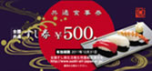 | すし券は1枚500円です。 (全国のすし券取扱店で 500円相当の商品とお引き換えいたします。) |